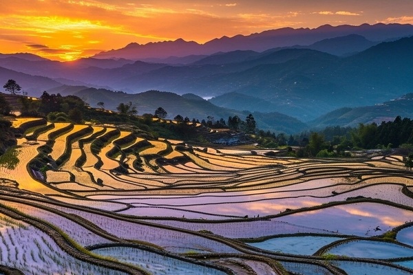 【元陽梯田】它位於雲南省元陽縣的哀牢山南部,是哈尼族人世世代代留下的傑作,被譽為「真正的大地藝術、真正的大地雕塑」。它規模宏大,氣勢磅礡,僅元陽縣縣境內就有17萬畝梯田,是紅河哈尼梯田的核心區。元陽梯田從古至今始終是一個充滿生命活力的系統,今天它仍然是哈尼族人民物質和精神生活的根本,也是哈尼族人文化與自然巧妙結合的產物。
